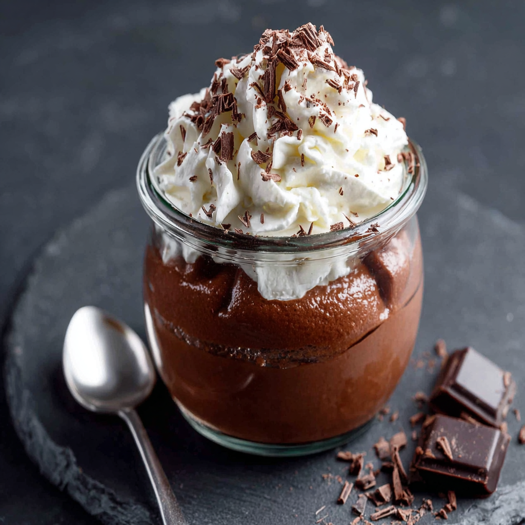 3️⃣ Monter les verrines : garnissez la crème au chocolat de chantilly généreuse.