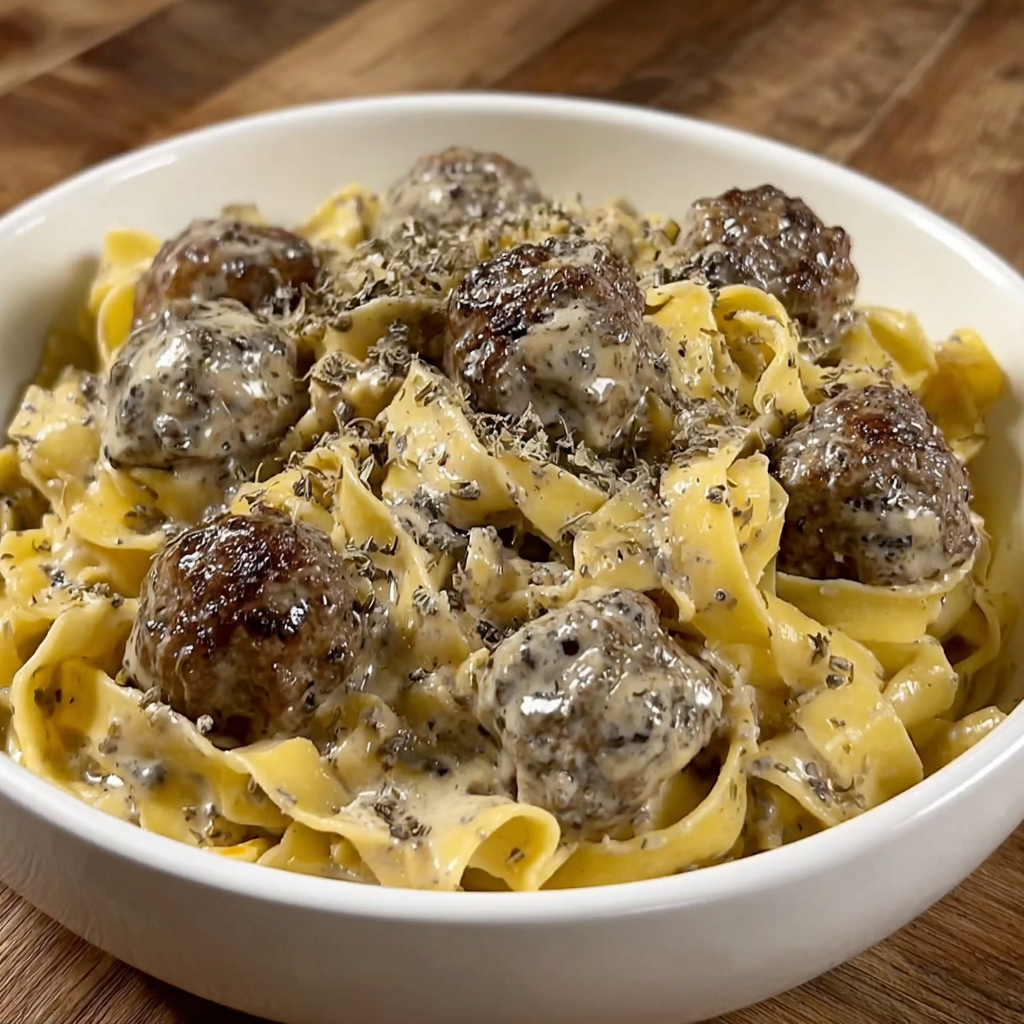 Des boulettes moelleuses, des tagliatelles fraîches et une sauce au poivre crémeuse à tomber… c’est un plat plein de caractère et de douceur à la fois. Parfait pour un dîner en famille ou entre amis