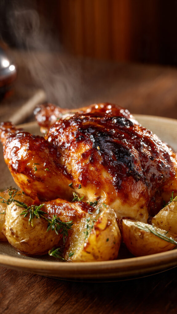 Servi avec des pommes de terre rôties, ce plat est un véritable classique du dimanche midi, mêlant générosité, parfum et croustillant irrésistible.