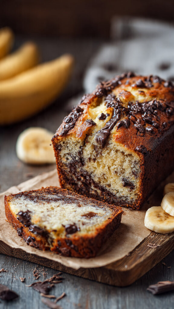 Ce cake utilise des bananes bien mûres, ce qui lui donne une texture irrésistible et un parfum naturel sucré — sans excès. Avec les pépites de chocolat, c’est le bonheur assuré à chaque tranche.