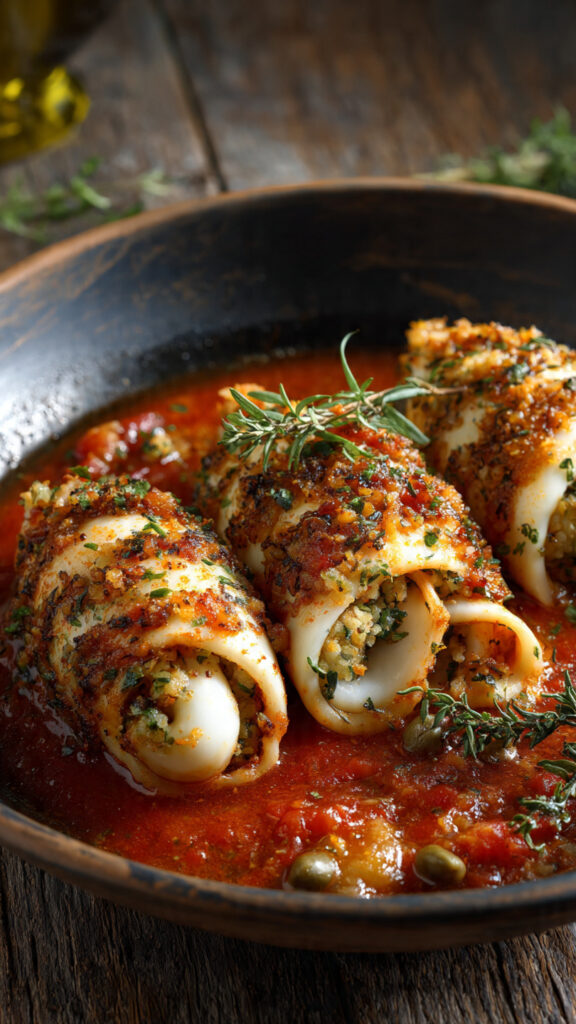 Cuits à la poêle dans une sauce tomate maison, ils deviennent fondants et savoureux, avec une farce moelleuse qui embaume toute la cuisine… Un vrai plat de soleil .