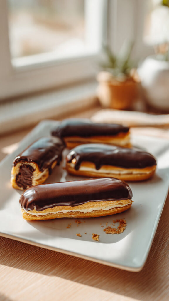 Moelleux, brillants et intensément chocolatés, les éclairs au chocolat maison font toujours sensation. Cette version simplifiée, inspirée de Chef Damien, vous permet d’obtenir une pâte à choux parfaitement gonflée et une crème lisse sans stress. Un grand classique de la pâtisserie française, accessible même aux débutants !