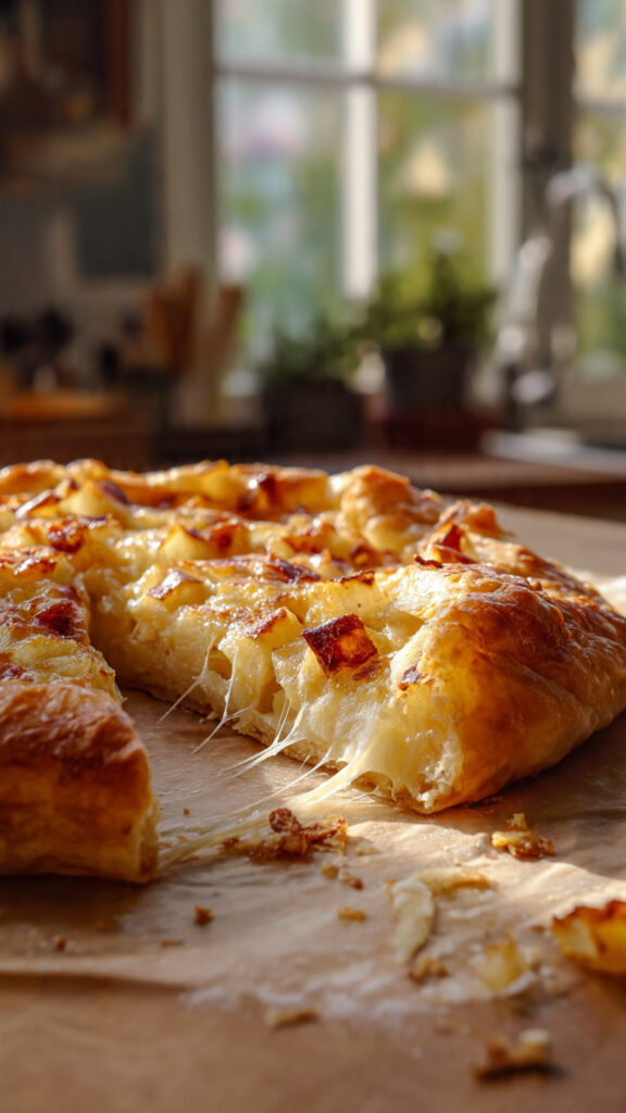 Une galette feuilletée ultra croustillante garnie de pommes de terre fondantes, de fromage à raclette et de bœuf… un pur bonheur salé pour l’hiver !