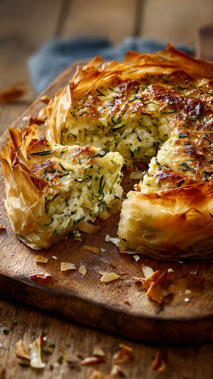 Tarte Salée de Pâte Phyllo à la Poêle avec Courgettes – Croustillante, Légère et Prête en Quelques Minutes