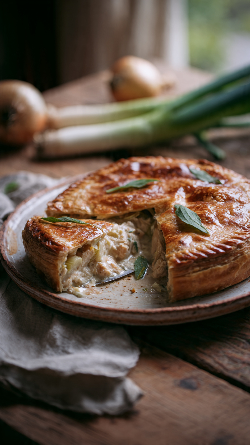 Tourte Crémeuse au Poulet et aux Poireaux (Ultra Fondante & Parfumée)