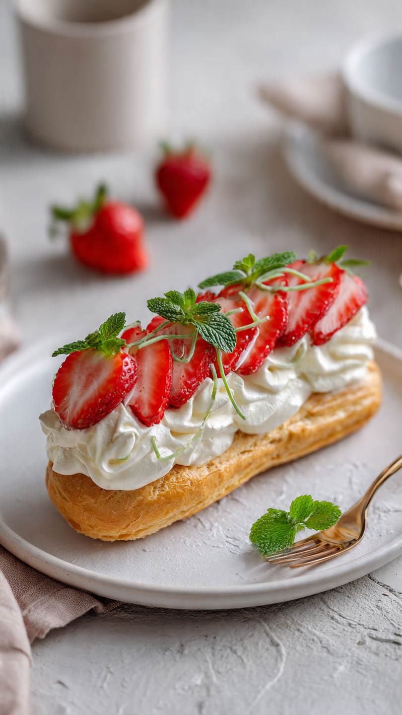 🍓 Éclair à la Crème et Chantilly Maison, l’Élégance de la Pâtisserie Française