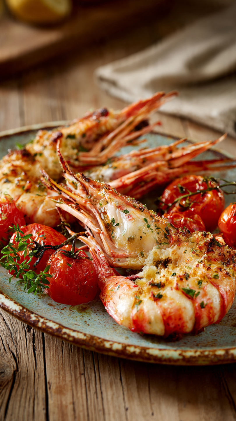 Les scampi au four incarnent l’élégance de la cuisine méditerranéenne : peu d’ingrédients, une cuisson rapide et des saveurs franches qui mettent le produit au premier plan. Rôtis doucement, ils deviennent tendres et juteux, subtilement parfumés au citron, à l’huile d’olive et aux herbes, avec une touche de tomates rôties pour l’équilibre.Idéal pour un repas…