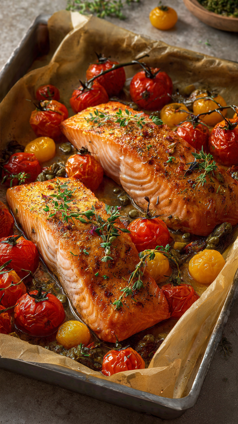 Un plat ensoleillé, sain et parfumé, prêt en un rien de temps 🌿Ces filets de saumon à la méditerranéenne sont cuits au four avec des tomates cerises, des câpres, de l’ail et des herbes, pour un résultat fondant et ultra savoureux. 🕒 Infos recette Préparation : 10 min Cuisson : 15–18 min Portions : 2…