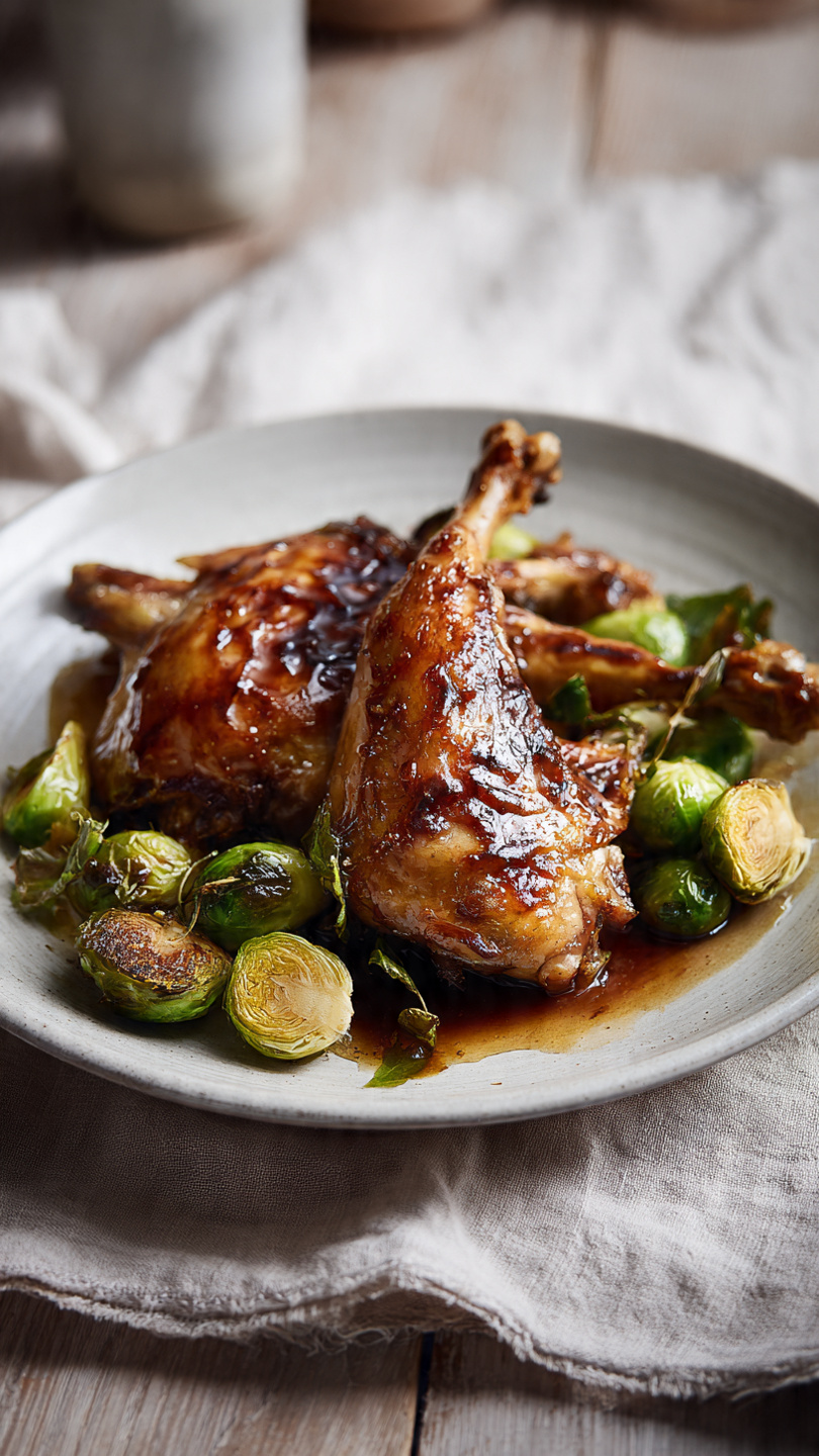 🍯 Cuisses de pintade laquées au miel et balsamique, choux de Bruxelles rôtis