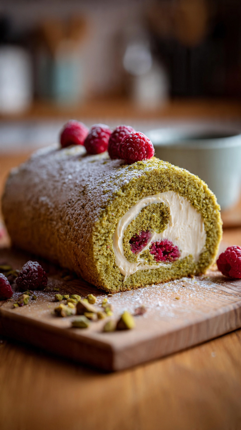 Bûche Framboises & Pistaches – Le Gâteau Roulé Festif qui Fait Craquer Tout le Monde