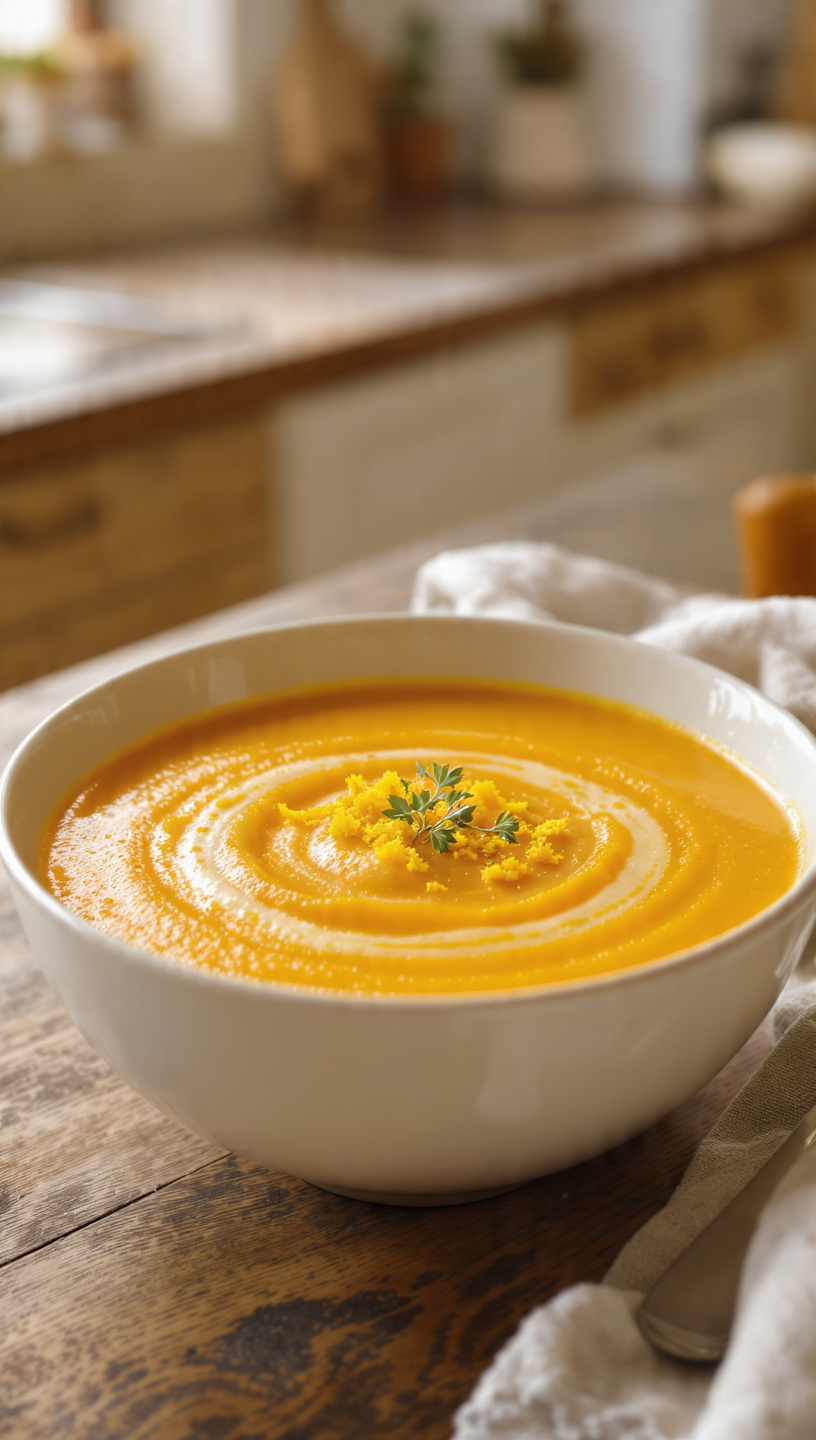 🎃 Velouté de Potimarron à la Clémentine & Thym — Une Douceur Hivernale Pleine de Soleil