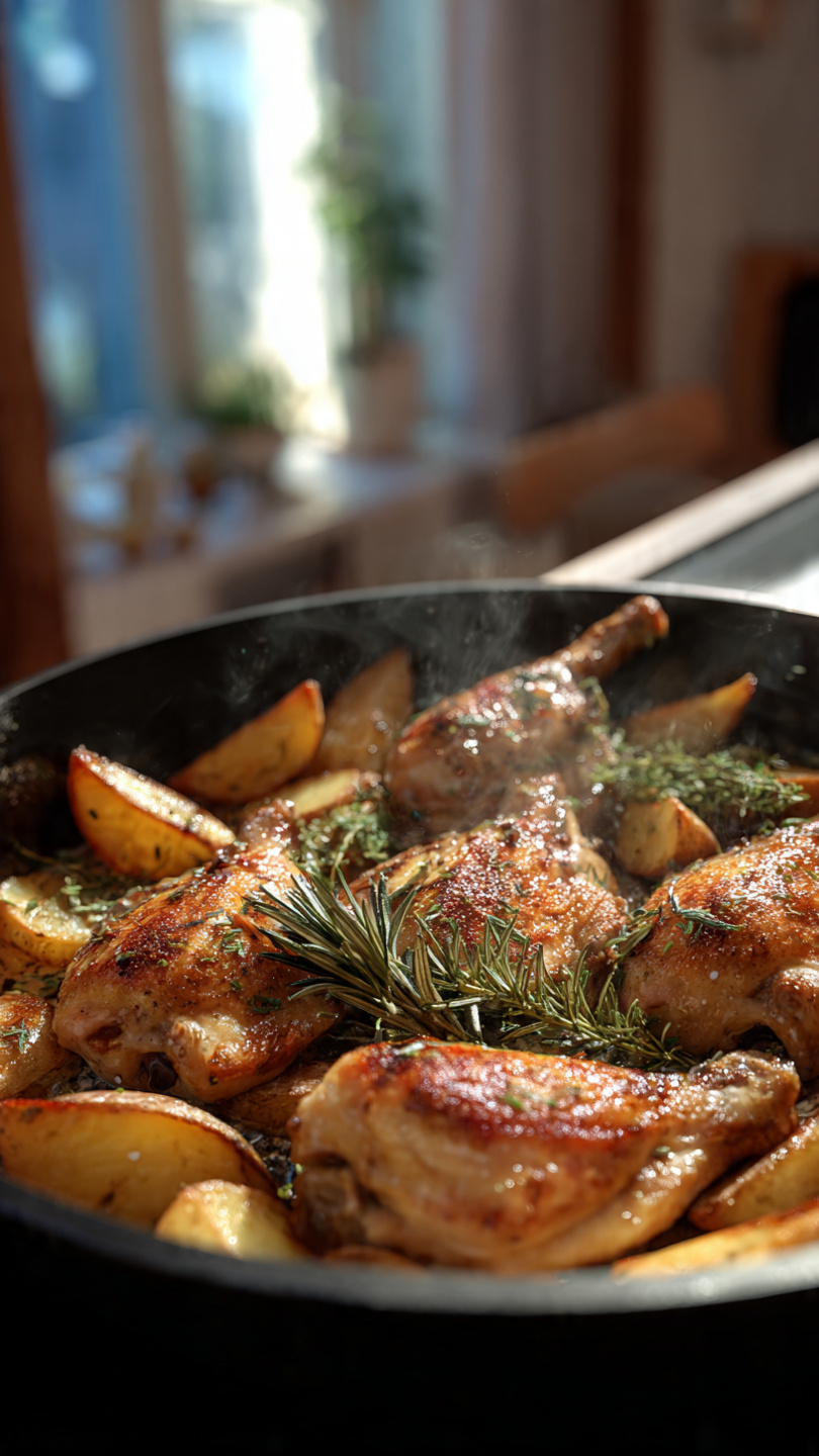 🍗🥔 Poulet & Pommes de Terre à la Poêle – Le Classique Doré qui Parfume Toute la Maison