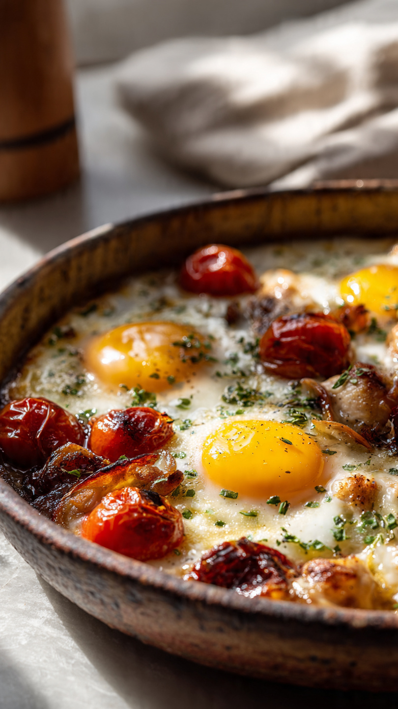 🍳🐔 Œufs au Blanc de Poulet, Oignons & Tomates Cerises au Four – Le Plat Express qui Fait l’Unanimité