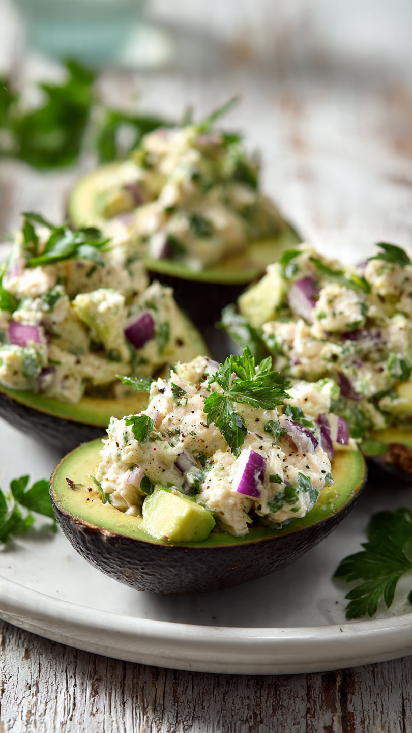 🥑✨ Avocats Farcis à la Salade Crémeuse au Poulet – Fraîcheur Chic et Gourmande