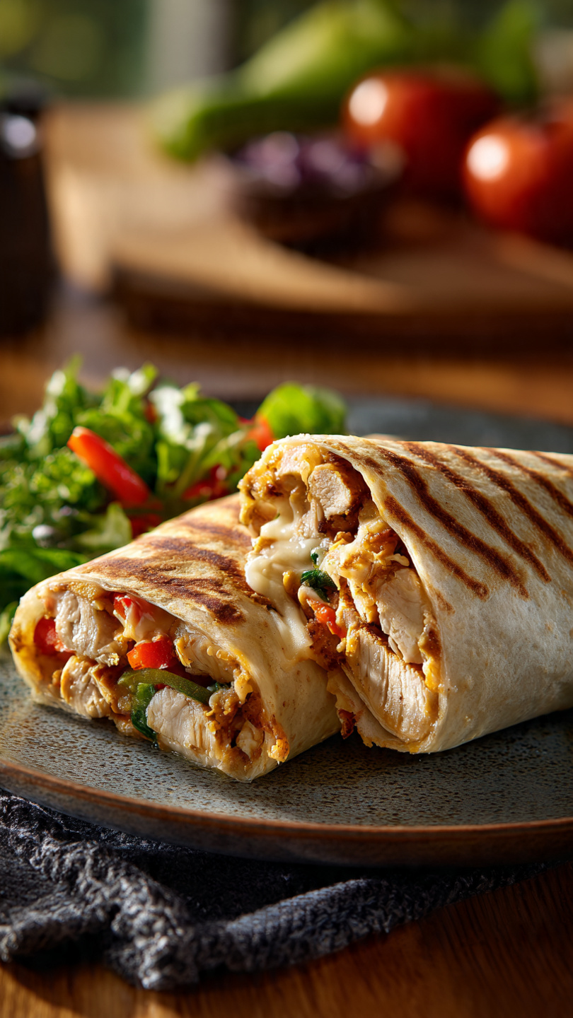 🌯🔥 Burrito de Poulet Rôti, Poivrons Fondants et Fromage Filant