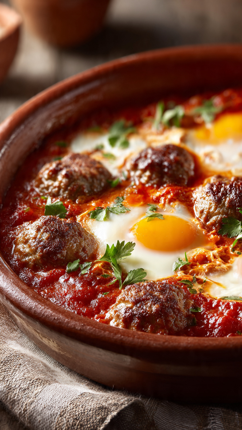 🍳🔥 Chakchouka aux Keftas de Bœuf & Œufs Mijotés – Le Plat Convivial qui Fait Voyager
