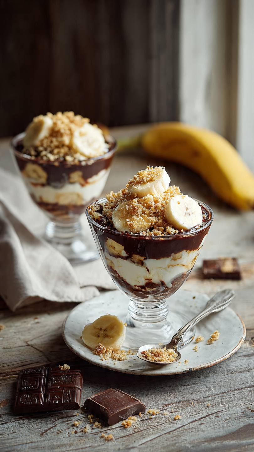 🍌🍫 Crumble Chocolat Banane en Verrines – Le dessert qui fait fondre tout le monde