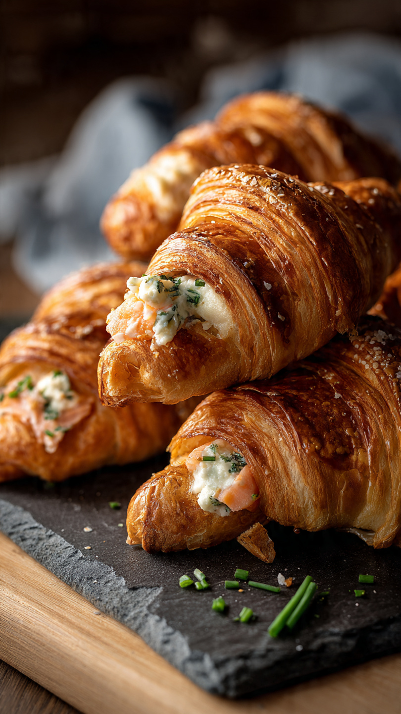 🥐 Mini Croissants au Saumon Fumé & Fromage Frais – L’Apéro Chic Prêt en 10 Minutes ✨